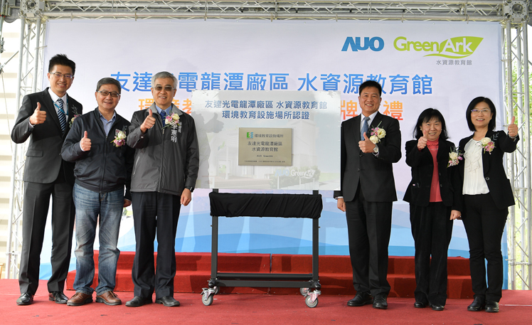 AUO announced “AUO GreenArk” at Longtan Site was certified as an environmental education facility by the Department of Environmental Protection and hosted its inauguration ceremony today (12). Through refining the results of water recycling into systematic courses of environmental education and the cultivation of professional teachers and volunteers from enterprises, AOA GreenArk provides a learning field of environmental education for elementary school students. After its Taichung Plant acquired the first certification of environmental education facility in 2014, the certification of GreenArk at Longtan Site makes AOA the only technology company(*) possessing two sites showcasing environmental education in Taiwan. AOA actively connects local resources and teams with the neighborhood to promote environmental education and deeply root this concept in the next generation.